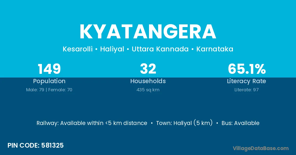 Haliyal (5 km) is the nearest town to Kyatangera village for major economic activities and is located approximately 5 km away.