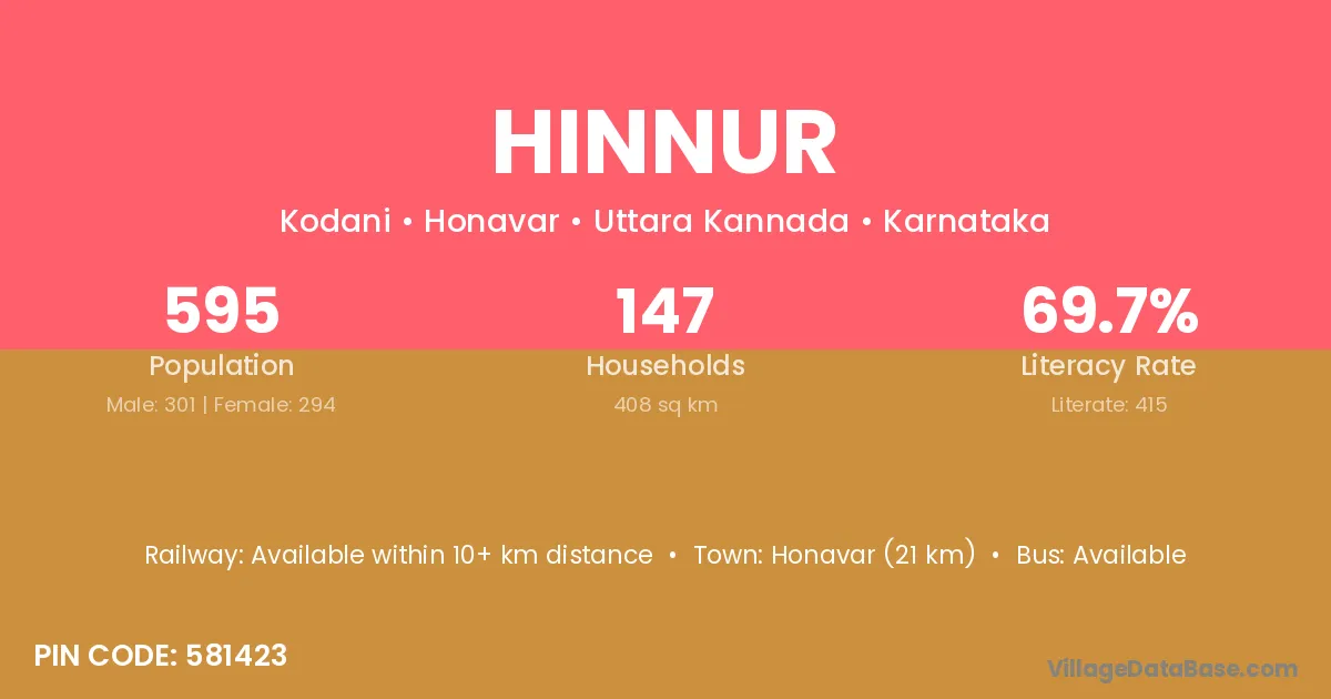 Honavar (21 km) is the nearest town to Hinnur village for major economic activities and is located approximately 21 km away.