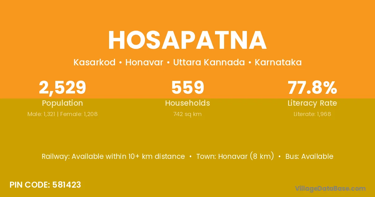 Honavar (8 km) is the nearest town to Hosapatna village for major economic activities and is located approximately 8 km away.