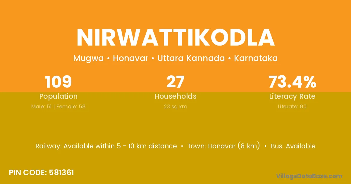 Honavar (8 km) is the nearest town to Nirwattikodla village for major economic activities and is located approximately 8 km away.