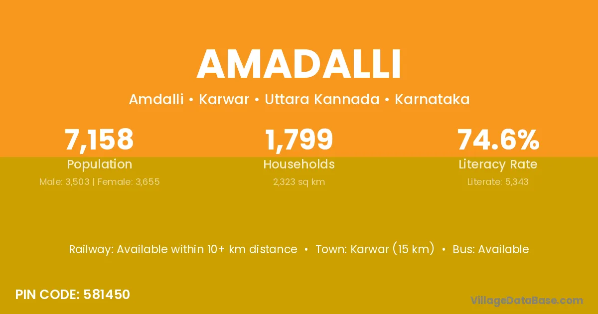 Amadalli village has a total population of 7,158 people, of which 3,503 are males and 3,655 are females.