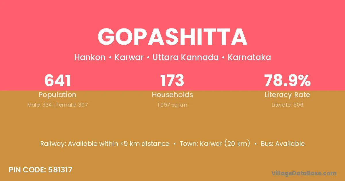 Karwar (20 km) is the nearest town to Gopashitta village for major economic activities and is located approximately 20 km away.