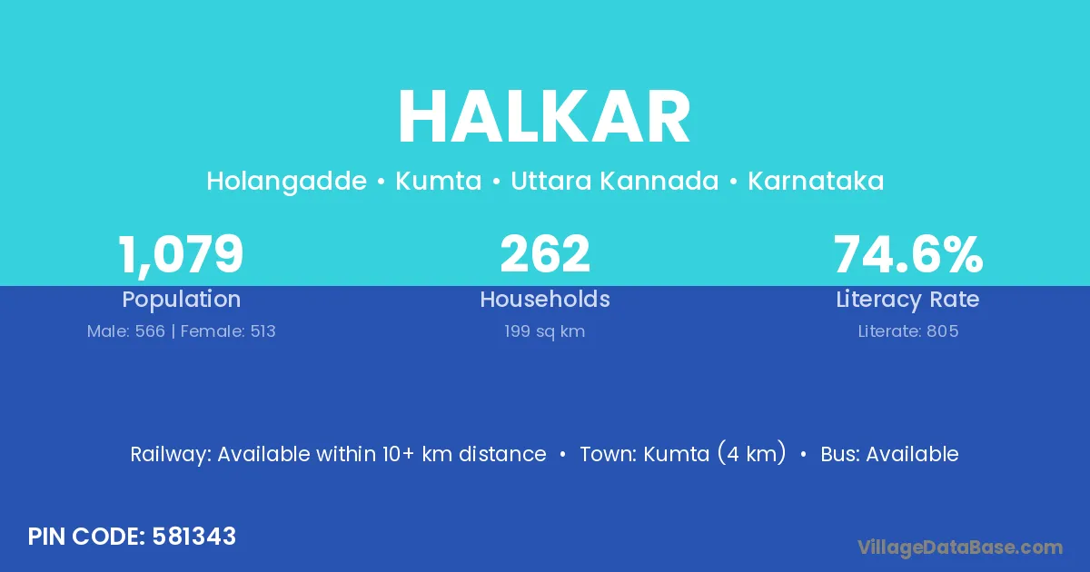 Kumta (4 km) is the nearest town to Halkar village for major economic activities and is located approximately 4 km away.