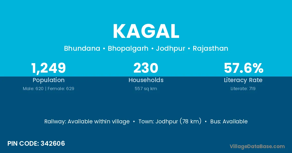 The literacy rate of Kagal village is 81.48%. Male literacy stands at 87.43% and female literacy at 75.49%.