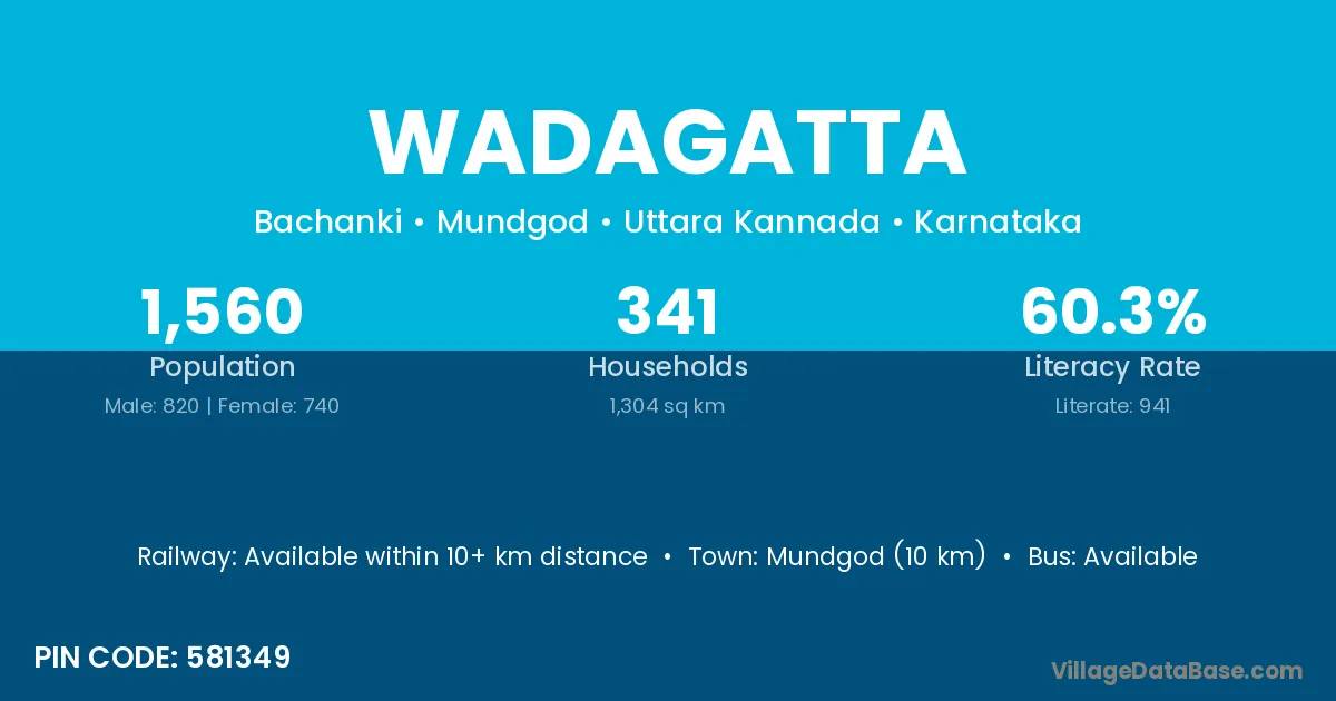 Mundgod (10 km) is the nearest town to Wadagatta village for major economic activities and is located approximately 10 km away.