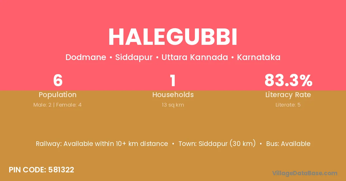 Halegubbi village has a total population of 6 people, of which 2 are males and 4 are females.