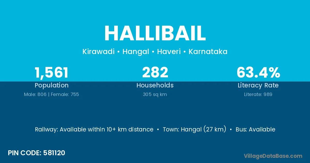 Sirsi (25 km) is the nearest town to Hallibail village for major economic activities and is located approximately 25 km away.