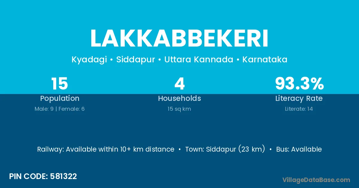 Lakkabbekeri village has a total population of 15 people, of which 9 are males and 6 are females.