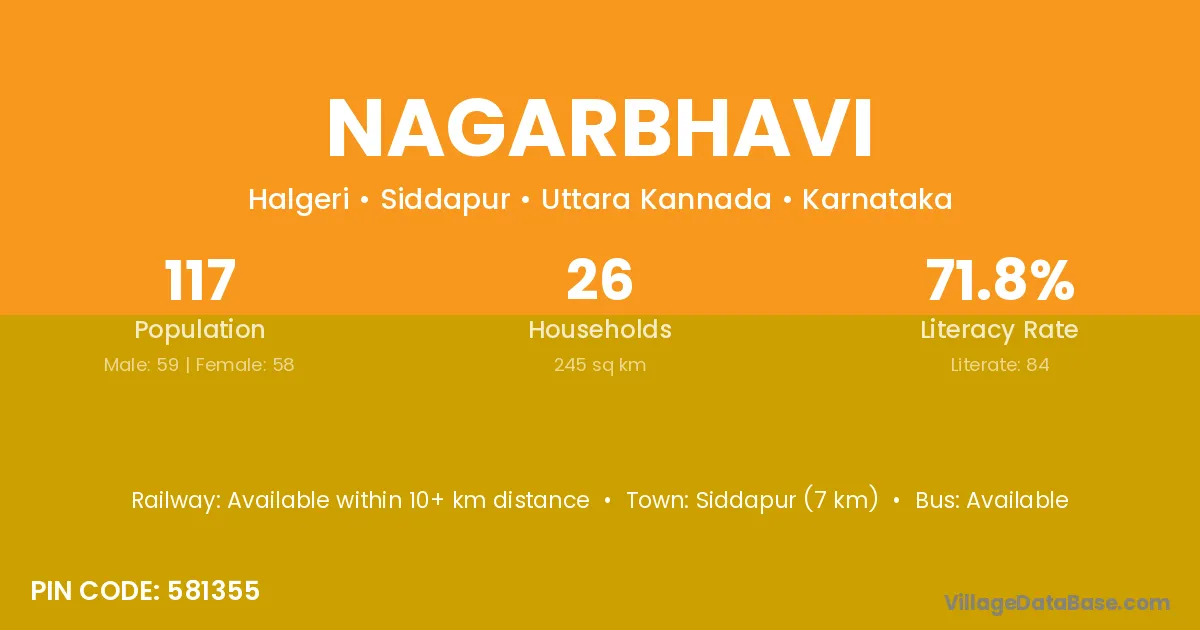 Nagarbhavi village has a total population of 117 people, of which 59 are males and 58 are females.