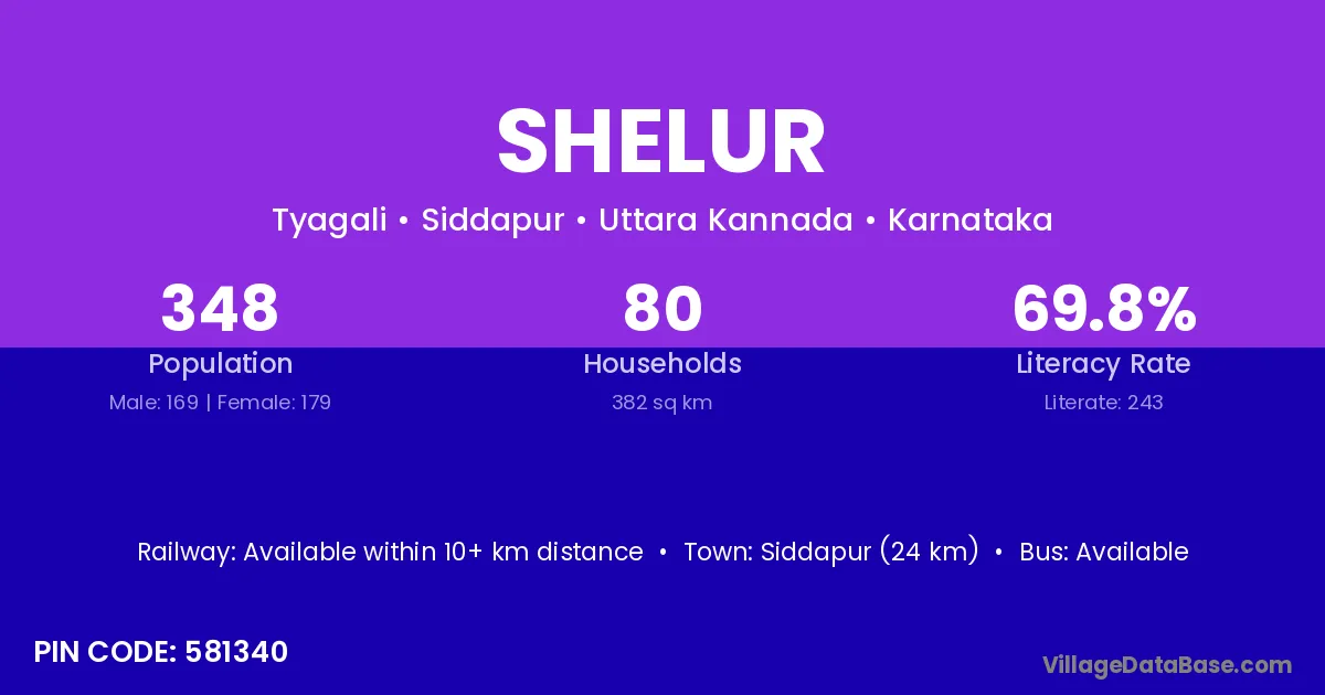 Siddapur (24 km) is the nearest town to Shelur village for major economic activities and is located approximately 24 km away.