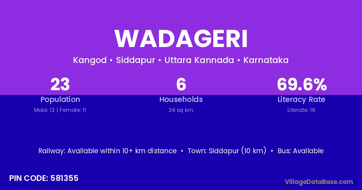 Siddapur (10 km) is the nearest town to Wadageri village for major economic activities and is located approximately 10 km away.