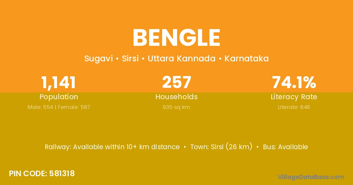 Sirsi (26 km) is the nearest town to Bengle village for major economic activities and is located approximately 26 km away.