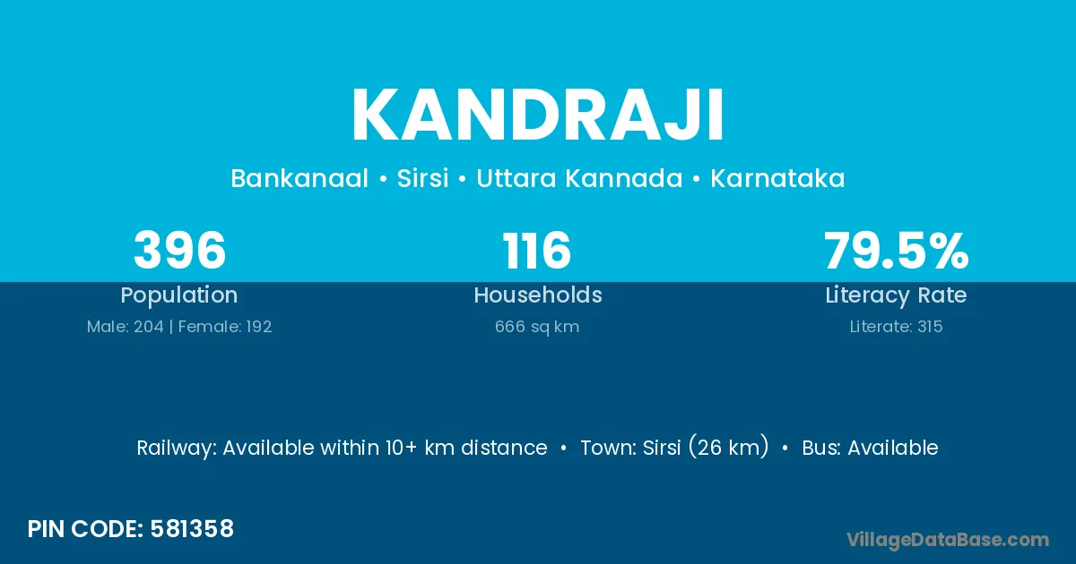 Sirsi (26 km) is the nearest town to Kandraji village for major economic activities and is located approximately 26 km away.