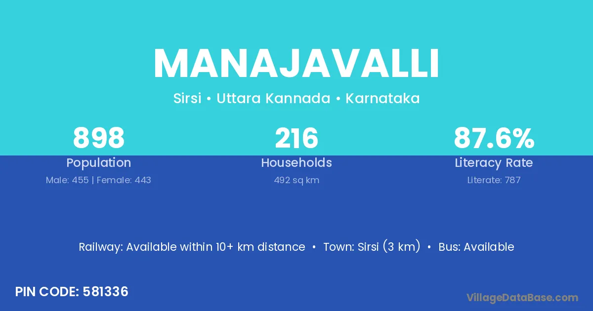 Sirsi (3 km) is the nearest town to Manajavalli village for major economic activities and is located approximately 3 km away.