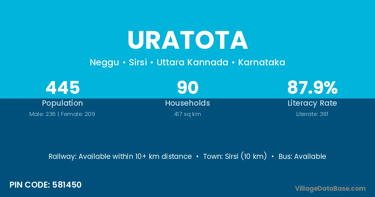 Sirsi (10 km) is the nearest town to Uratota village for major economic activities and is located approximately 10 km away.