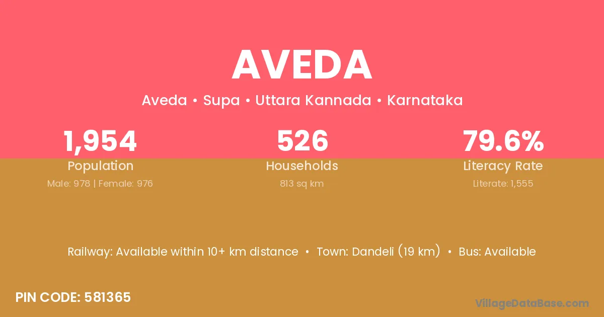 Dandeli (19 km) is the nearest town to Aveda village for major economic activities and is located approximately 19 km away.