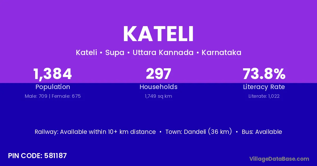 Dandeli (36 km) is the nearest town to Kateli village for major economic activities and is located approximately 36 km away.
