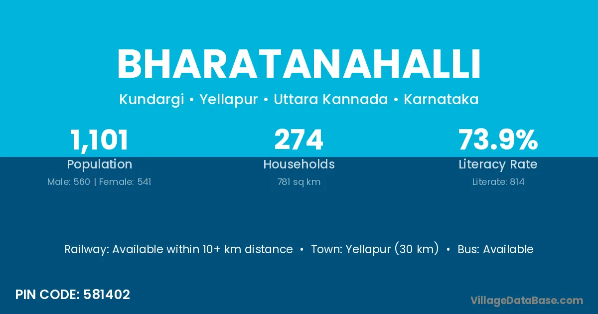 Yellapur (30 km) is the nearest town to Bharatanahalli village for major economic activities and is located approximately 30 km away.
