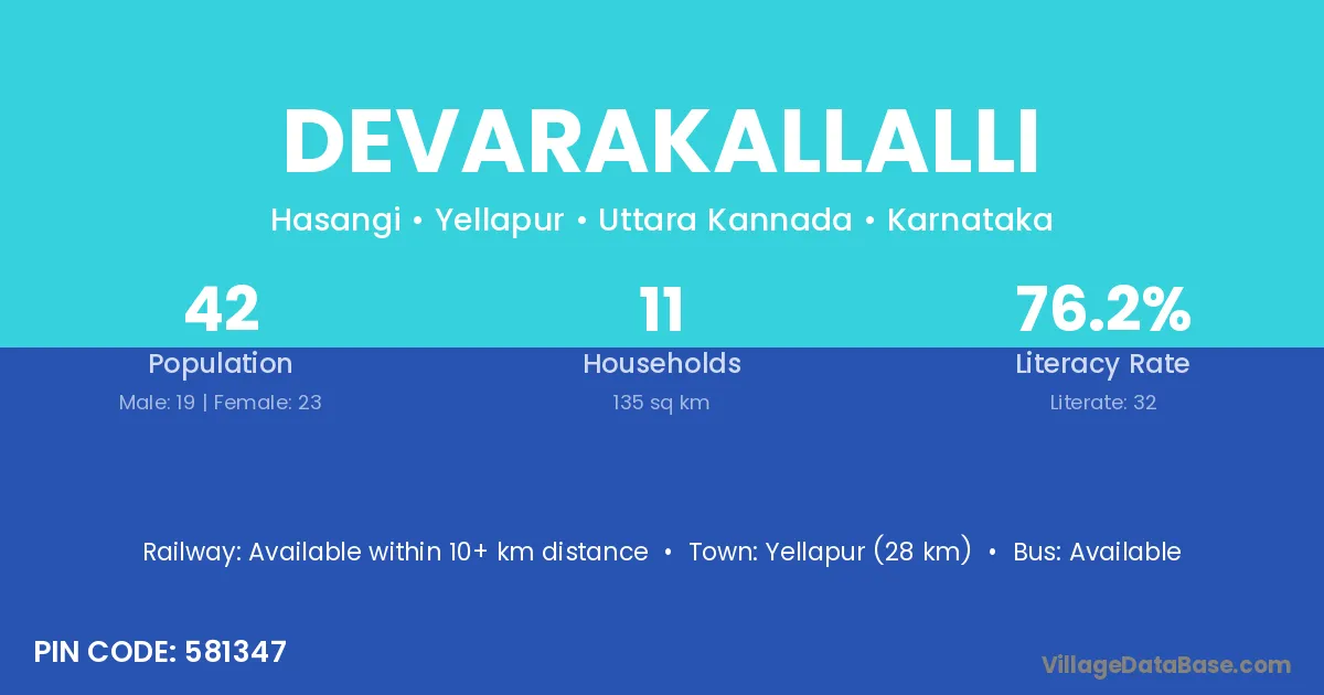 Yellapur (28 km) is the nearest town to Devarakallalli village for major economic activities and is located approximately 28 km away.