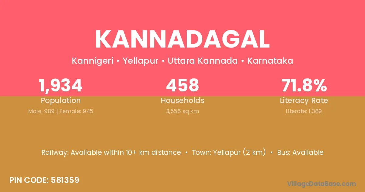 Yellapur (2 km) is the nearest town to Kannadagal village for major economic activities and is located approximately 2 km away.