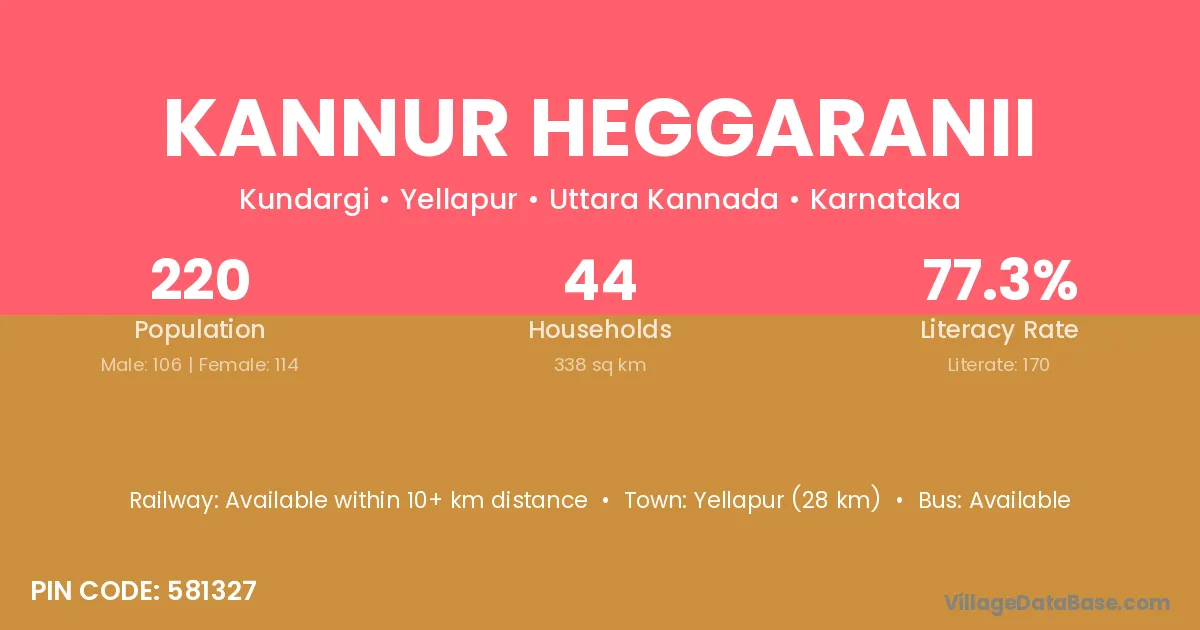 Kannur Heggaranii village has a total population of 220 people, of which 106 are males and 114 are females.