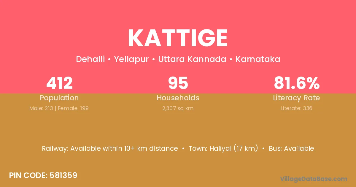 Haliyal (17 km) is the nearest town to Kattige village for major economic activities and is located approximately 17 km away.