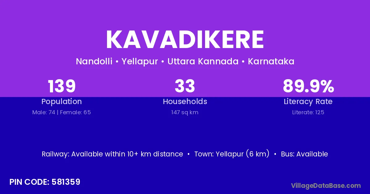 Yellapur (6 km) is the nearest town to Kavadikere village for major economic activities and is located approximately 6 km away.