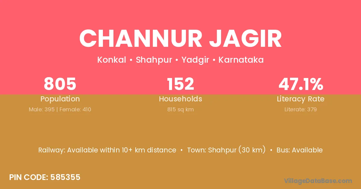 Shahpur (30 km) is the nearest town to Channur Jagir village for major economic activities and is located approximately 30 km away.