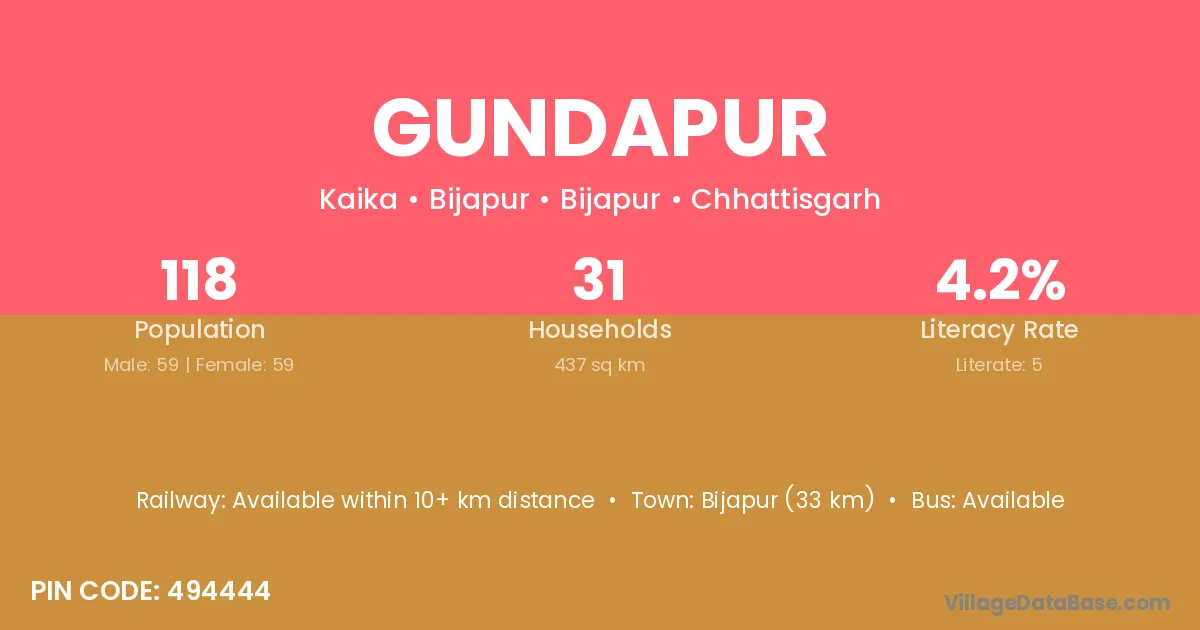 The literacy rate of Gundapur village is 27.95%. Male literacy stands at 34.47% and female literacy at 20.81%.