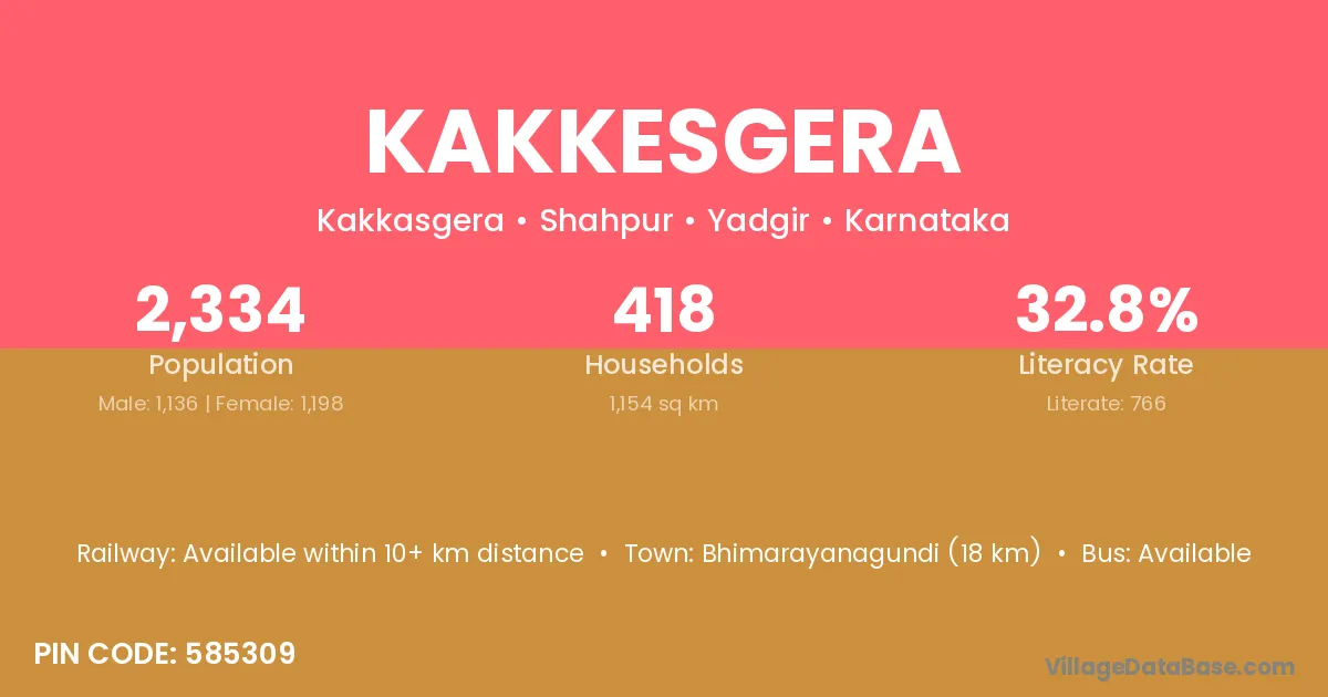 Bhimarayanagundi (18 km) is the nearest town to Kakkesgera village for major economic activities and is located approximately 18 km away.