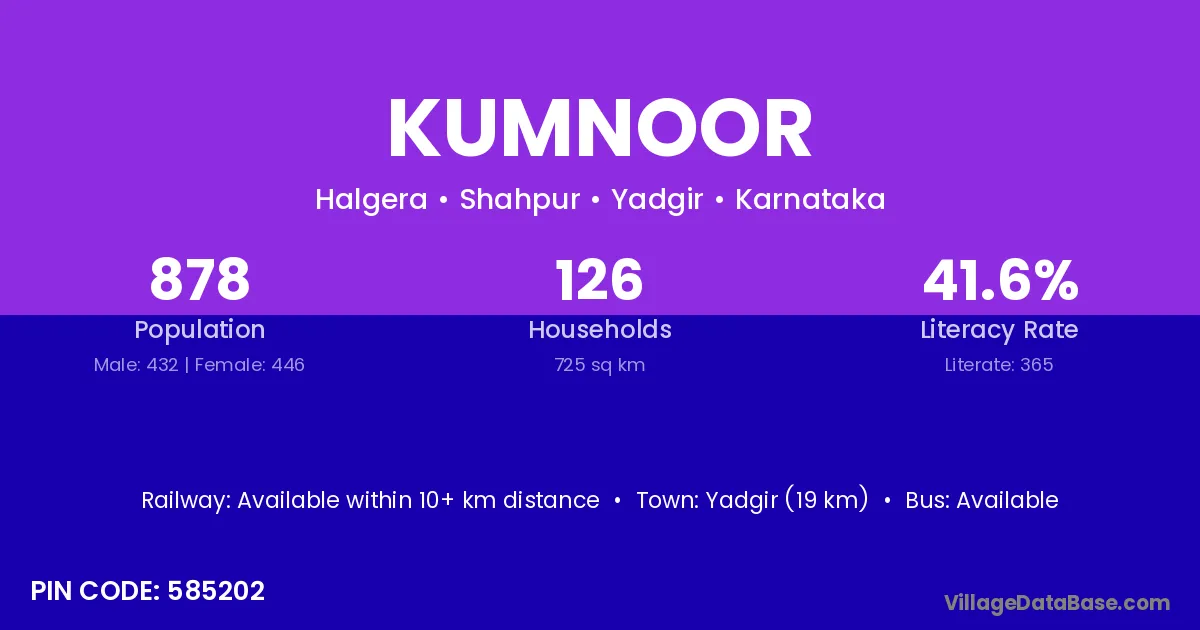 Yadgir (19 km) is the nearest town to Kumnoor village for major economic activities and is located approximately 19 km away.