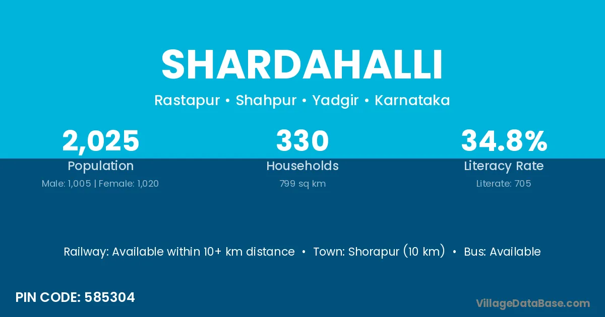 Shorapur (10 km) is the nearest town to Shardahalli village for major economic activities and is located approximately 10 km away.