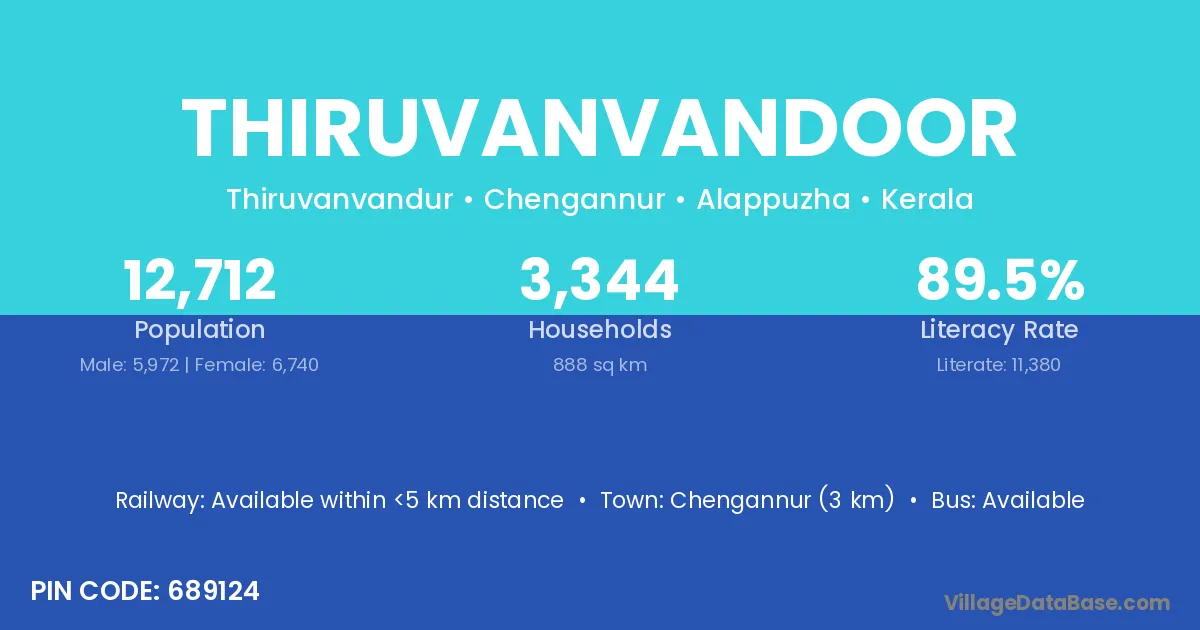 Thiruvanvandoor village has a total population of 12,712 people, of which 5,972 are males and 6,740 are females.