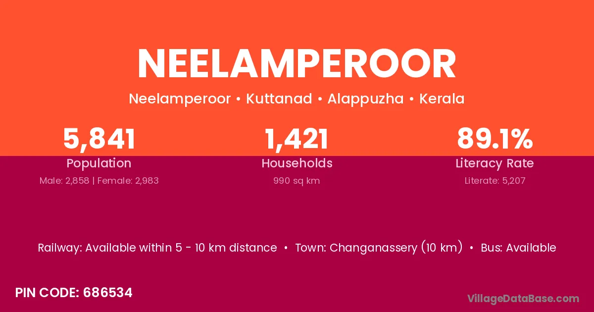Neelamperoor village has a total population of 5,841 people, of which 2,858 are males and 2,983 are females.