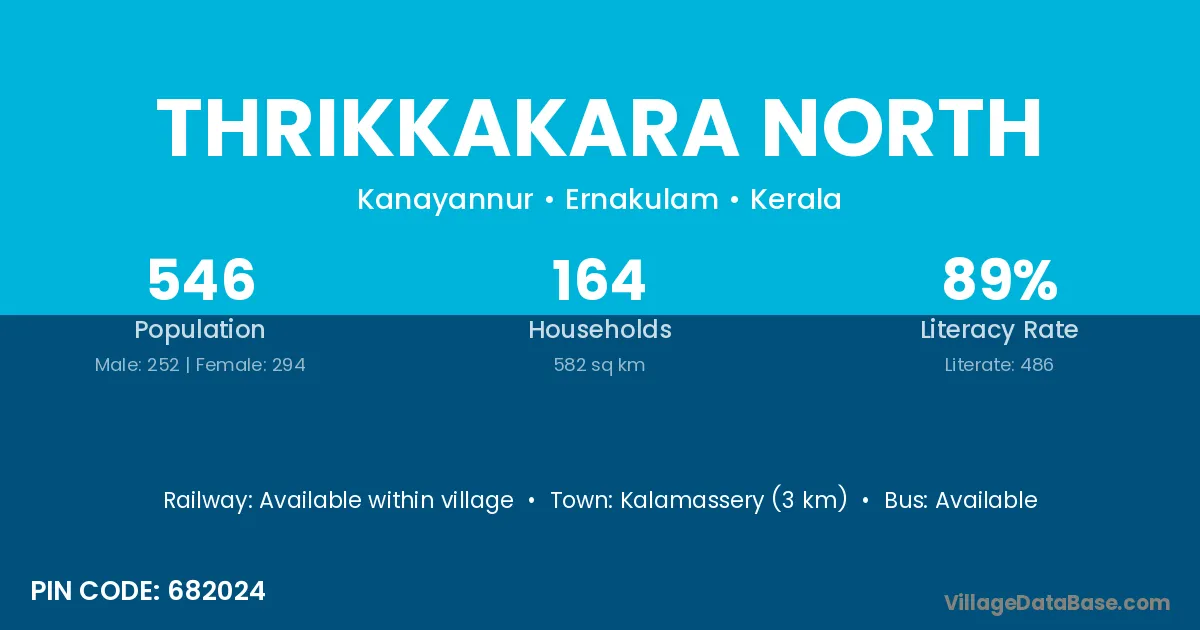 Thrikkakara North village has a total population of 546 people, of which 252 are males and 294 are females.