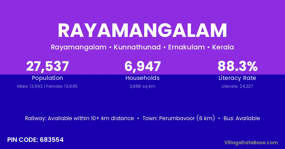 According to Census 2011 information, the village code of Rayamangalam village is 683554.