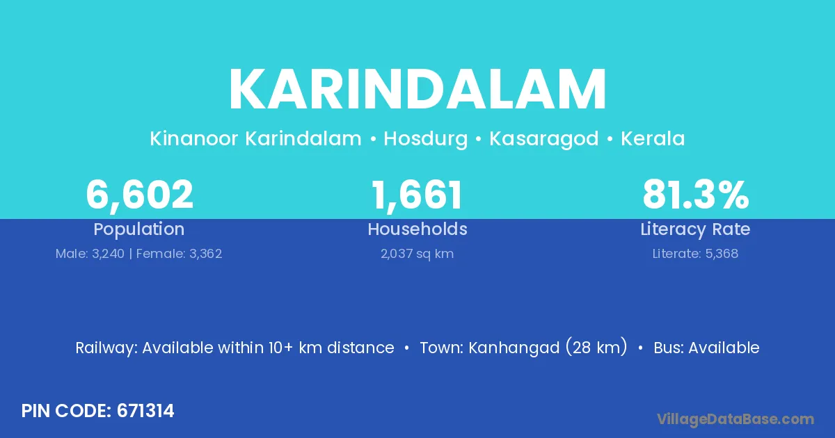 Kanhangad (28 km) is the nearest town to Karindalam village for major economic activities and is located approximately 28 km away.