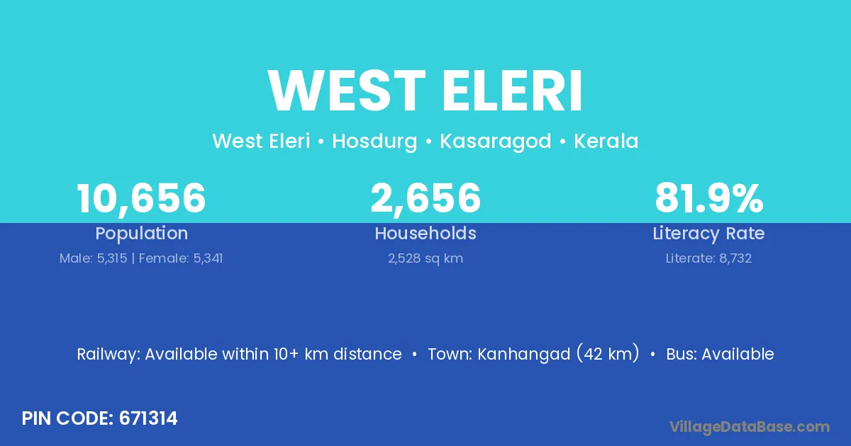 Kanhangad (42 km) is the nearest town to West Eleri village for major economic activities and is located approximately 42 km away.