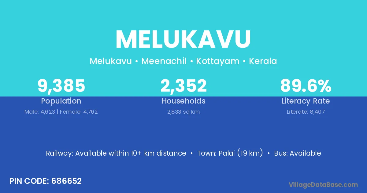 Palai (19 km) is the nearest town to Melukavu village for major economic activities and is located approximately 19 km away.