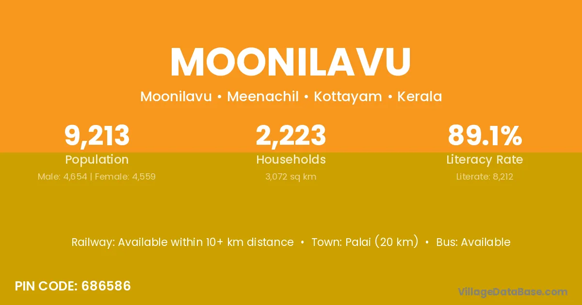 Palai (20 km) is the nearest town to Moonilavu village for major economic activities and is located approximately 20 km away.