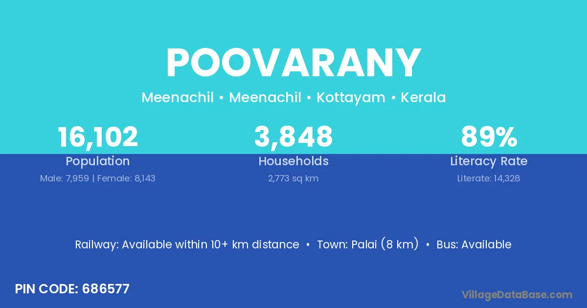 Palai (8 km) is the nearest town to Poovarany village for major economic activities and is located approximately 8 km away.