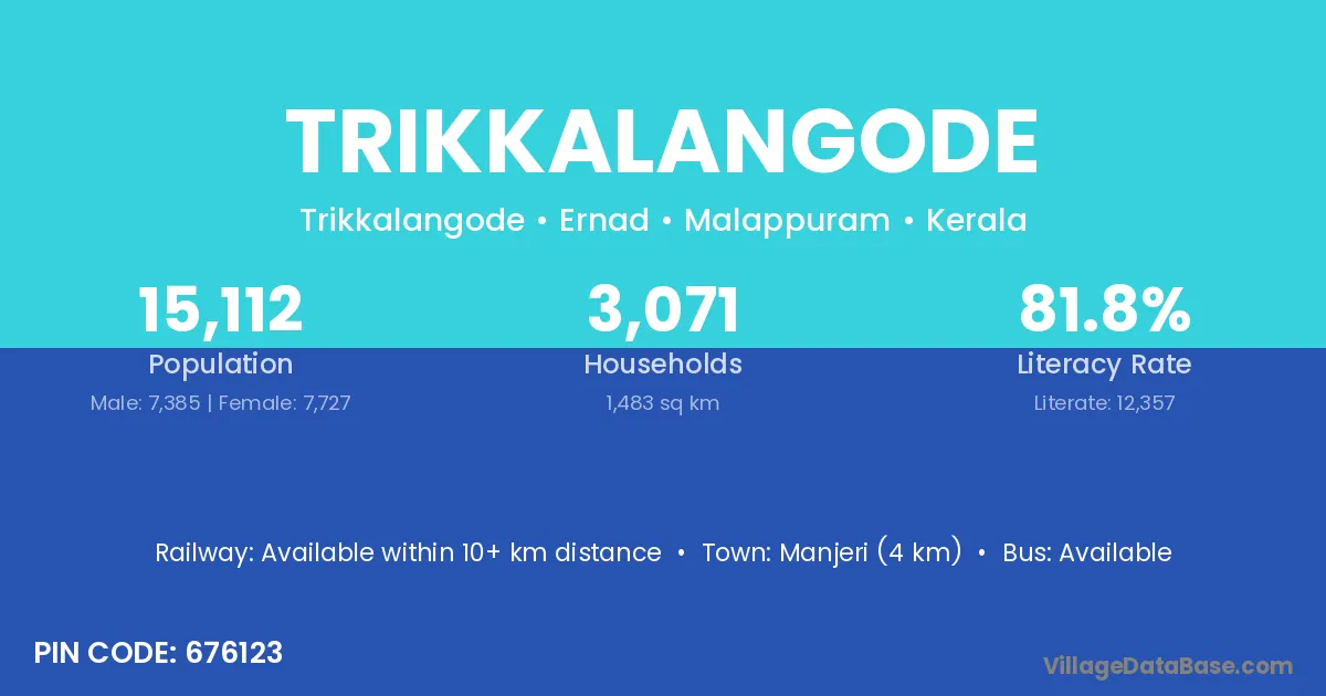 Manjeri (4 km) is the nearest town to Trikkalangode village for major economic activities and is located approximately 4 km away.