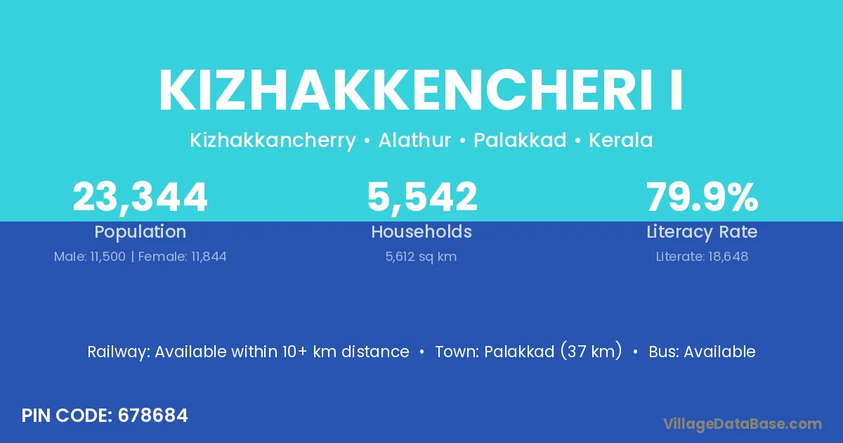 Palakkad (37 km) is the nearest town to Kizhakkencheri I village for major economic activities and is located approximately 37 km away.