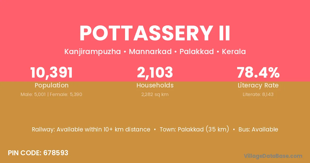 According to Census 2011 information, the village code of Pottassery Ii village is 678593.