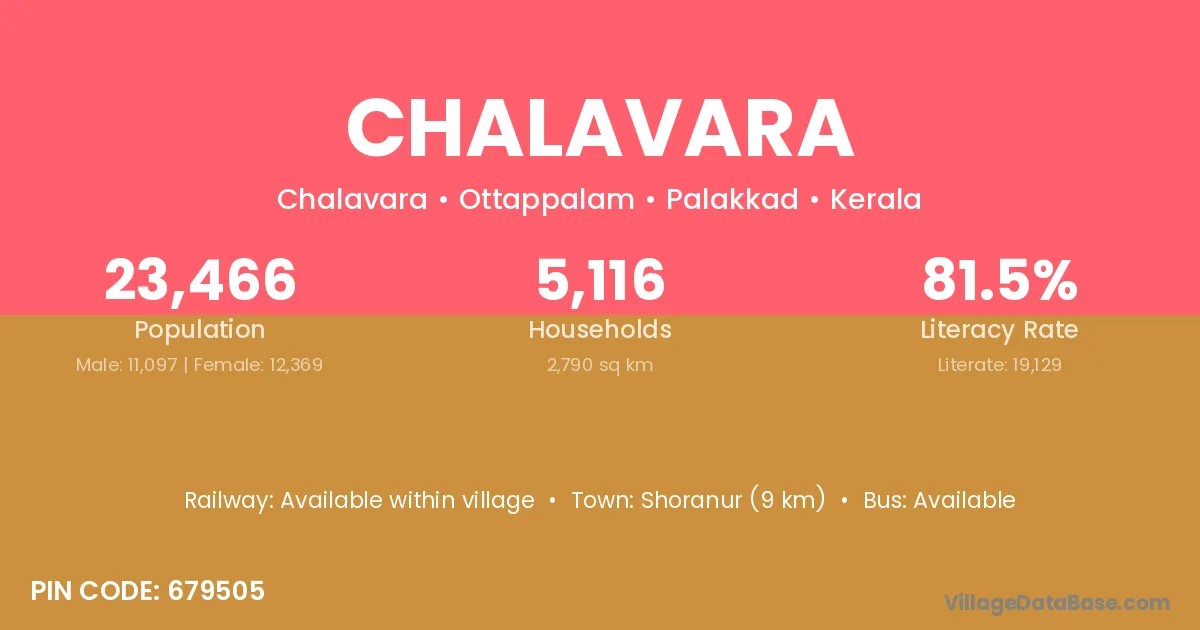 Shoranur (9 km) is the nearest town to Chalavara village for major economic activities and is located approximately 9 km away.