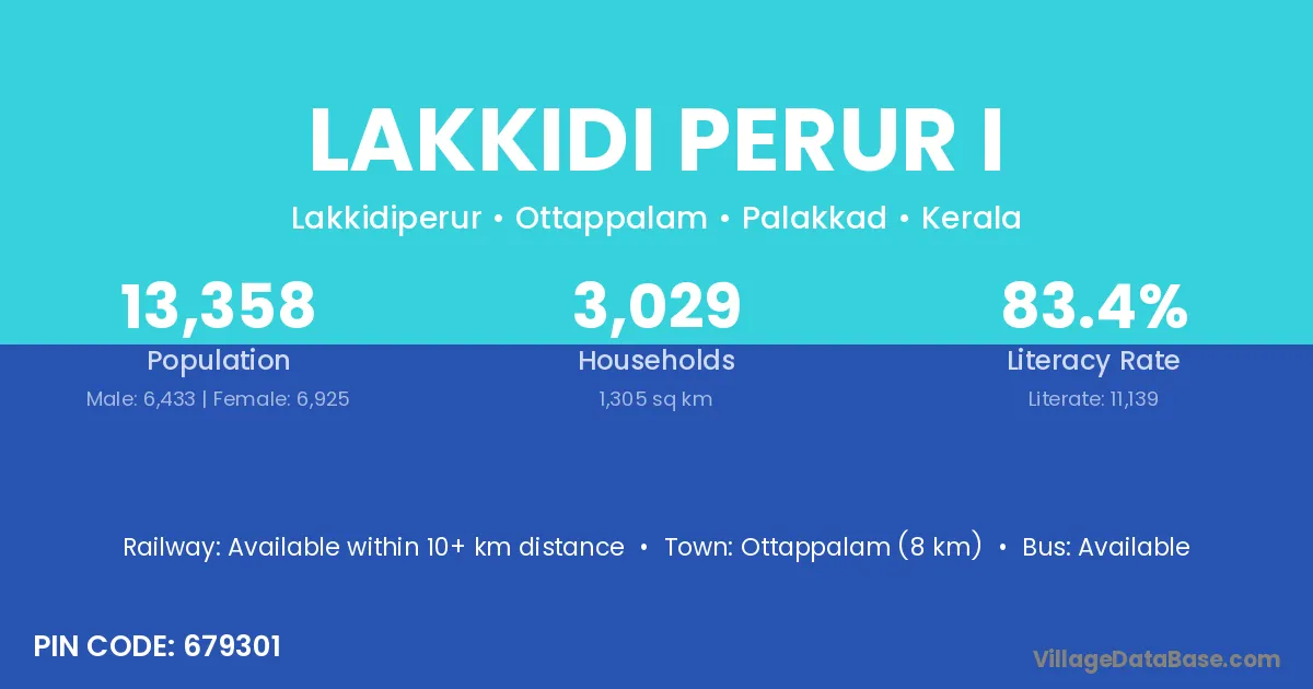 Lakkidi Perur I village has a total population of 13,358 people, of which 6,433 are males and 6,925 are females.