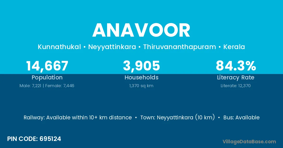 According to Census 2011 information, the village code of Anavoor village is 695124.