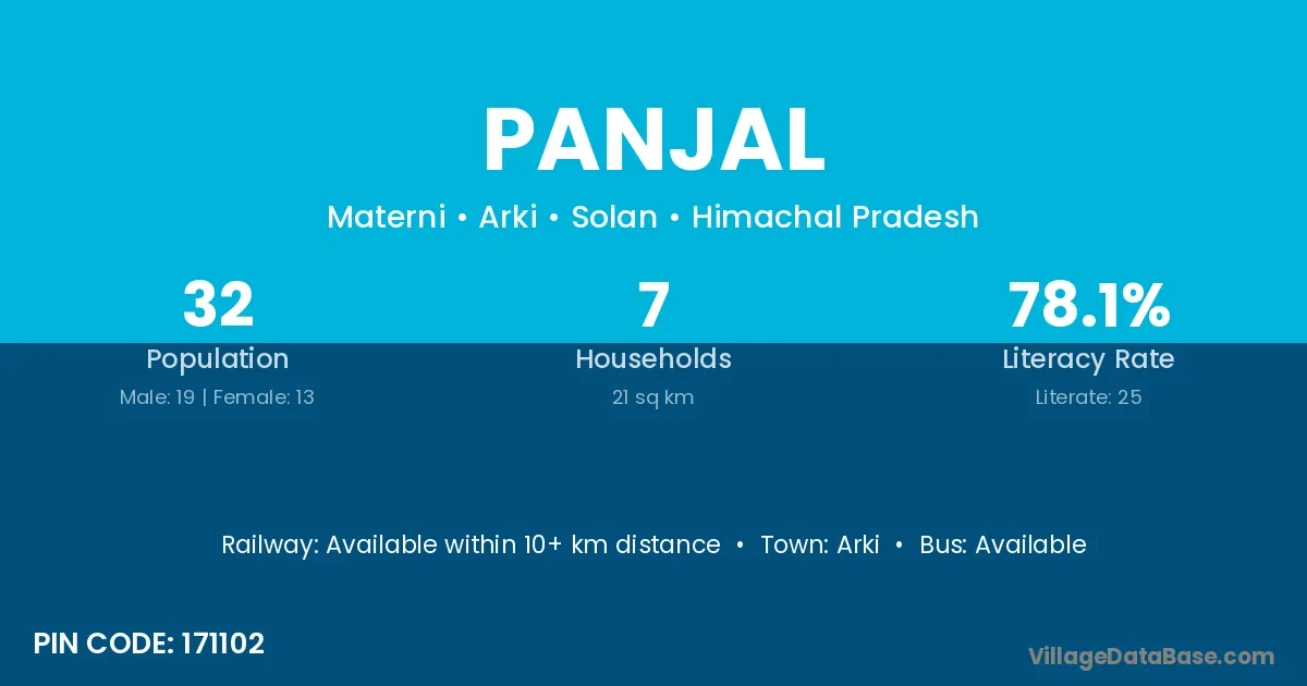 The literacy rate of Panjal village is 80.26%. Male literacy stands at 82.22% and female literacy at 78.41%.