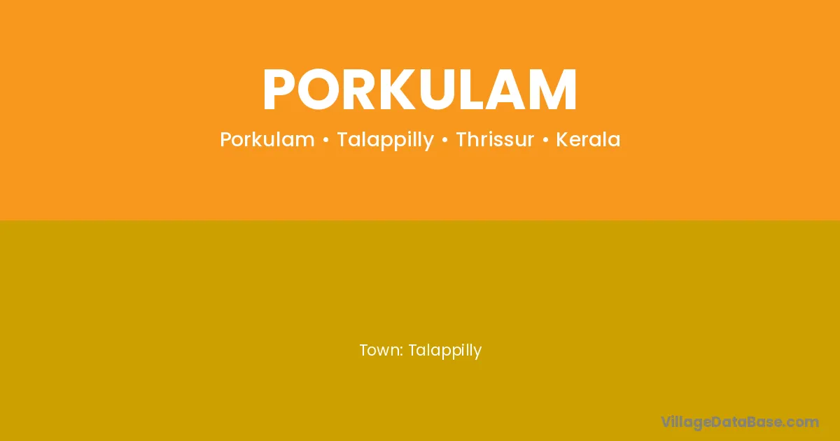 Talappilly is the nearest town to Porkulam village for major economic activities