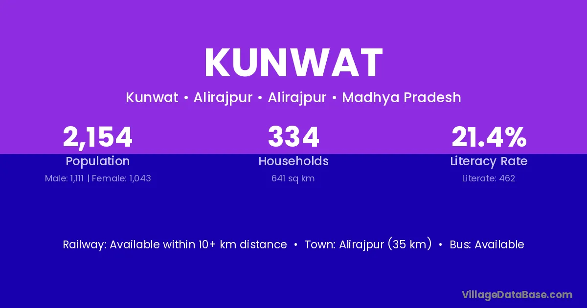 Alirajpur (35 km) is the nearest town to Kunwat village for major economic activities and is located approximately 35 km away.